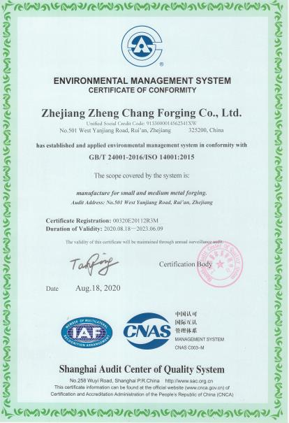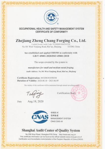 浙江正昌锻造股份有限公司创建于1988年,坐落于"中国汽摩配之都”、"中国锻造产业基地”浙江省瑞安市,专注于汽车、摩托车、电气系统、机械设备等各类锻造件、机加工零部件的生产。公司目前占地面积约14000平方米,建筑面积约24000平方米,注册资本2000多万元,总资产2.5亿元。公司现有员工240余人,其中各类技术术人员,中高级工程师80余人。